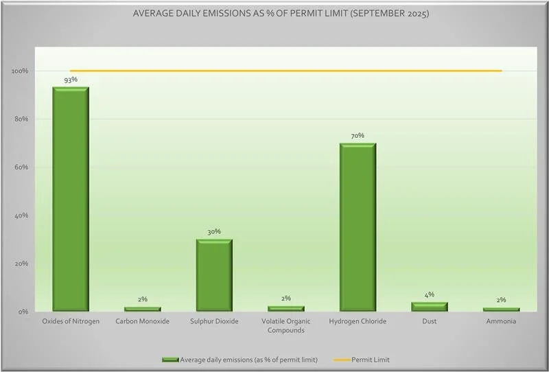 The Gloucestershire Energy from Waste Facility has published the emissions monitoring results for operational activity during October 2025.